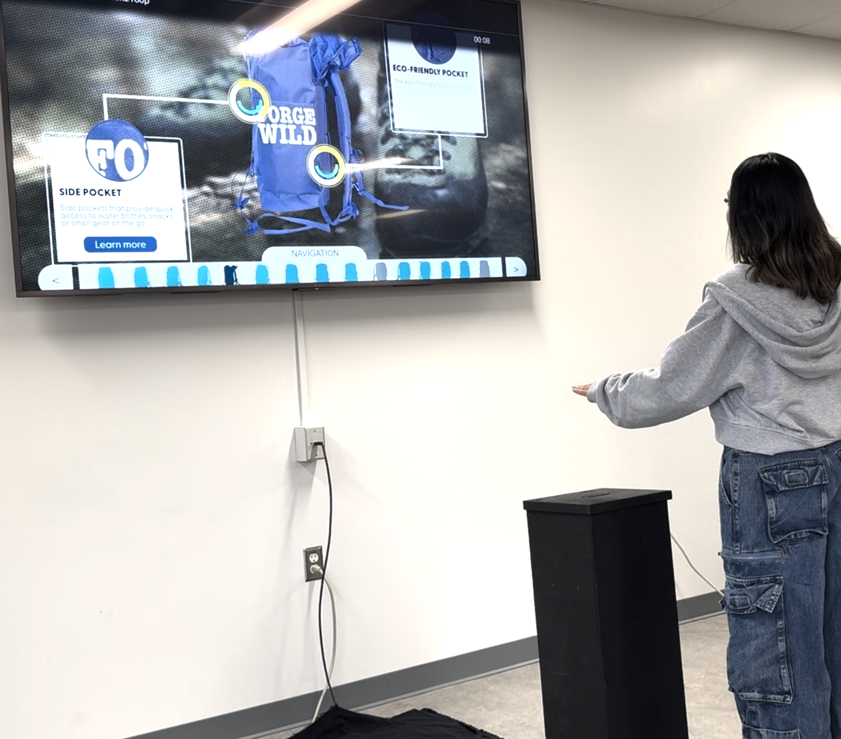 The goal was to create a touchless interactive experience that lets users view a backpack in full 360°, with video overlays at key angles highlighting product features. A major challenge was maintaining visual consistency across the 15-image sequence and integrating smooth, looped video overlays within a strict coding framework that limited customization to only editable variables.