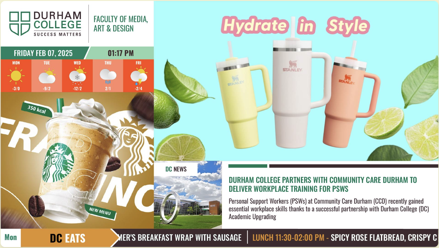 The final deliverables for this digital signage project included a fully functional, responsive web application built with HTML, CSS, and JavaScript, capable of seamlessly cycling through three custom motion graphic videos. Each video—tailored for Spotify, Odmines, and a Durham College PSA—was designed and rendered specifically for digital display environments. The project also included optimized video playback logic, responsive layout adjustments for various screen sizes, and all necessary project files packaged and ready for deployment. Together, these deliverables form a complete and scalable digital signage solution suitable for both commercial and institutional use.