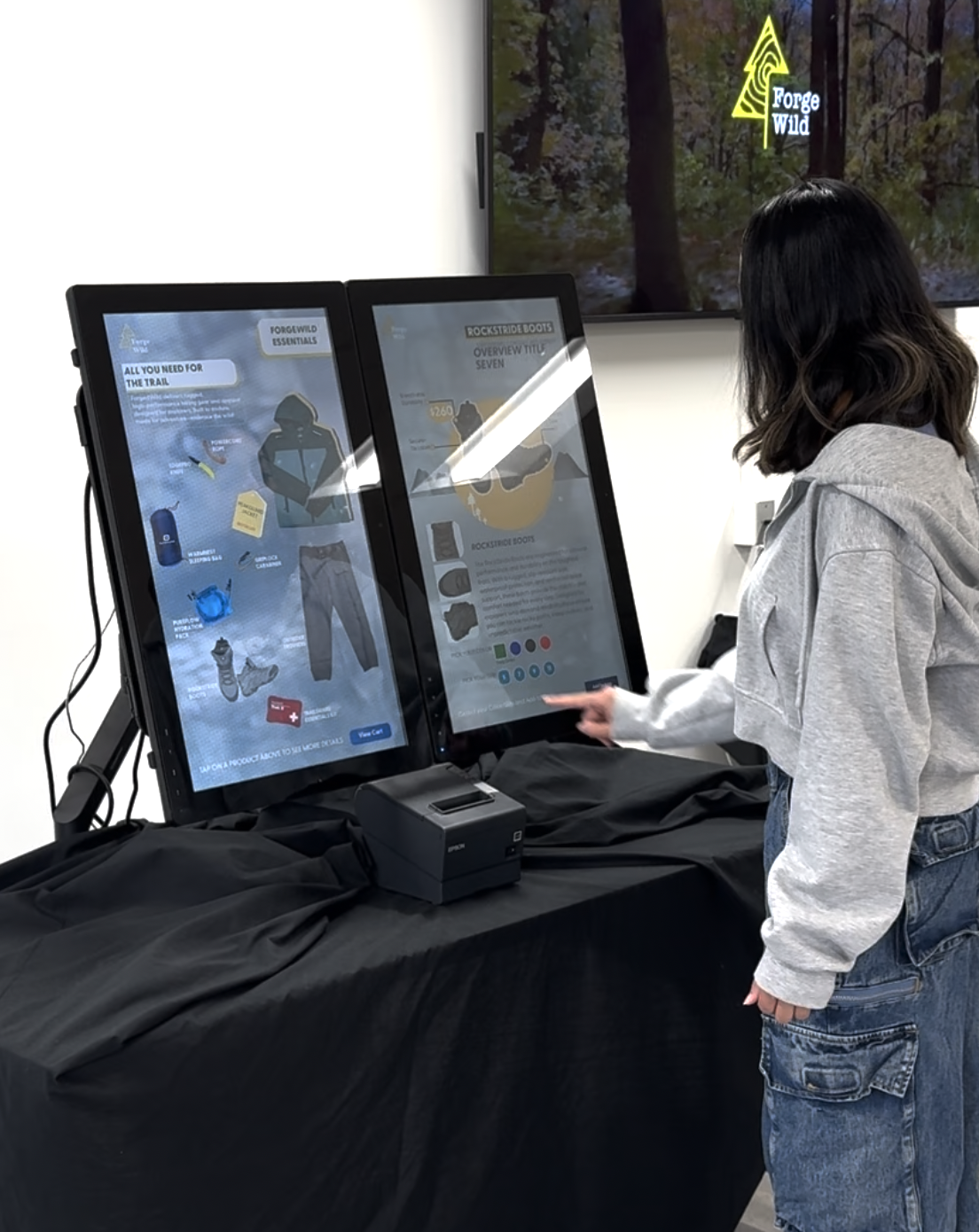The main goal was to create a seamless, intuitive interface where users could browse product categories on one screen while interacting with a detailed product view and dynamic shopping cart on the second. A key challenge involved designing for two separate screens with unique but synchronized functionality—each with its own video screensaver, resolution requirements, and UI expectations. Creating responsive transitions, integrating product assets, and aligning motion graphics across both screens added layers of complexity that demanded attention to user flow and technical precision.